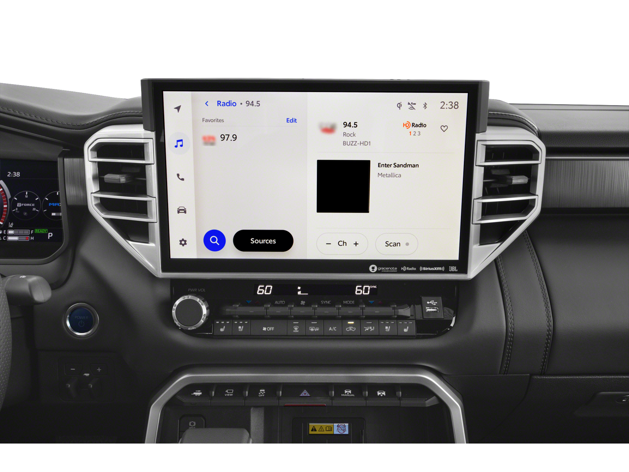 - Radio: Premium Audio w/JBL -inc: 14-inch touchscreen, 12 JBL speakers (including subwoofer and amplifier), Android Auto and Apple CarPlay compatible and SiriusXM w/3-month platinum plan trial subscription, See toyota.com/audio-multimedia for details, Connected services - Safety Connect w/up to 10-year trial, Remote Connect w/1-year trial, Drive Connect w/1-year trial, Service Connect w/up to 10-year trial, Wi-Fi Connect w/up to 3 GB within 1-month trial, See toyota.com/connected-services for details