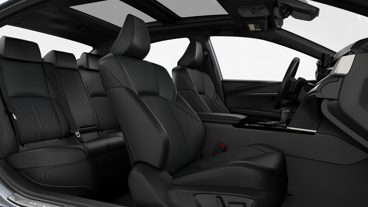 - Leather-trimmed front seats with seatback pockets; 8-way power-adjustable front driver's seat with power lumbar support; 8-way power-adjustable passenger front seat