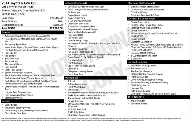 CARFAX One-Owner. Clean CARFAX. Magnetic Gray Metallic 2014 Toyota RAV4 XLE 2.5L 4-Cylinder DOHC Dual VVT-i 6-Speed Automatic FWD