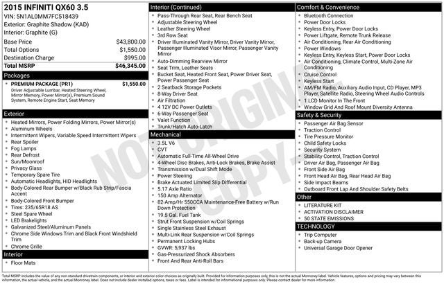 18 5-Spoke Aluminum Alloy Wheels, 2-Way Driver's Seat Power Lumbar Support, 3rd row seats: bench, 4-Wheel Disc Brakes, 5.17 Axle Ratio, 6 Speakers, ABS brakes, Activation Disclaimer, Air Conditioning, Alloy wheels, AM/FM radio: SiriusXM, AM/FM/CD/MP3 Audio System, Auto-dimming Rear-View mirror, Automatic temperature control, Bodyside moldings, Brake assist, Bumpers: body-color, CD player, Delay-off headlights, Driver door bin, Driver vanity mirror, Dual front impact airbags, Dual front side impact airbags, Dual Occupant Memory System, Electronic Stability Control, Enhanced Intelligent Key Memory, Entry & Exit Assist, Floor Mats, Four wheel independent suspension, Front anti-roll bar, Front Bucket Seats, Front Center Armrest w/Storage, Front dual zone A/C, Front fog lights, Front reading lights, Fully automatic headlights, Garage door transmitter, Heated door mirrors, Heated Front Seats, HEATED FRONT SEATS, Heated Steering Wheel, High intensity discharge headlights: Bi-Xenon, Illuminated entry, Leather Shift Knob, Leather steering wheel, Leather-Appointed Seats, Literature Kit, Low tire pressure warning, Occupant sensing airbag, Outside Mirrors w/Reverse Tilt-Down Feature, Outside temperature display, Overhead airbag, Overhead console, Panic alarm, Passenger door bin, Passenger vanity mirror, Power door mirrors, Power driver seat, Power Liftgate, Power moonroof, Power passenger seat, Power steering, Power windows, Premium Package, Radio data system, Radio: AM/FM/CD/DVD w/MP3 Playback Capability, Rear air conditioning, Rear anti-roll bar, Rear reading lights, Rear seat center armrest, Rear window defroster, Rear window wiper, Reclining 3rd row seat, Remote Engine Start, Remote keyless entry, Security system, Speed control, Speed-sensing steering, Speed-Sensitive Wipers, Split folding rear seat, Spoiler, Steering wheel mounted audio controls, Tachometer, Telescoping steering wheel, Tilt steering wheel, Traction control, Trip computer, Variably intermittent wipers.