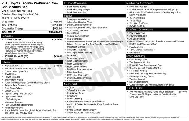 * If you’re looking for a compact pickup with a solid gold reputation for durability and reliability, the short list of choices will likely land you in one of the many 2015 Toyota Tacoma models. Off-roaders will appreciate the new TRD Pro Series. Source: KBB.com