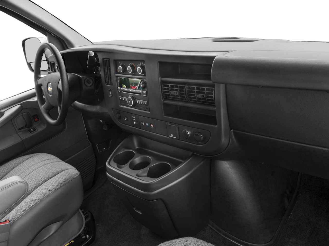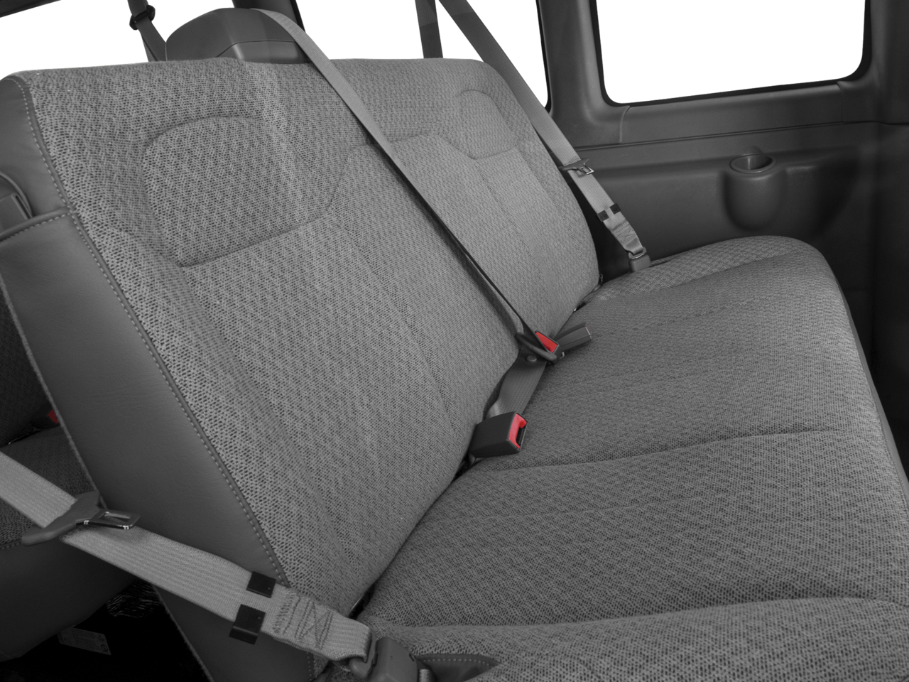 12-Passenger Seating (2-3-3-4 Seating Config), 145 Amp Alternator, 15-Passenger Seating (2-3-3-3-4 Seating Config), 16 x 6.5 Steel Wheels, 2 Speakers, 3.42 Rear Axle Ratio, 3rd row seats: bench, 4-Wheel Disc Brakes, 4th-Row Bench Seat, 8-Point Digital Compass, ABS brakes, Air Conditioning, AM/FM radio, Bluetooth® For Phone, Bumpers: chrome, Chrome Appearance Package, Chrome Grille, Compass, Convenience Package, Cruise Control, Custom Cloth Seat Trim, Delay-off headlights, Deluxe Console, Driver & Front Passenger Cloth Padded Visors, Driver door bin, Driver vanity mirror, Driver's Seat Mounted Armrest, Dual Composite Halogen Headlamps, Dual front impact airbags, Dual front side impact airbags, Electronic Stability Control, Emergency communication system: OnStar, Front & Rear Chrome Bumpers w/Step-Pad, Front anti-roll bar, Front Bucket Seats, Front reading lights, Front wheel independent suspension, Full-Floor Color-Keyed Carpeting, Fully automatic headlights, Illuminated entry, Inside Rear-View Manual Day/Night Mirror, Leather-Wrapped Steering Wheel, Low tire pressure warning, Occupant sensing airbag, Overhead airbag, Panic alarm, Passenger cancellable airbag, Passenger door bin, Passenger seat mounted armrest, Passenger vanity mirror, Power steering, Power windows, Preferred Equipment Group 1LT, Radio: AM/FM Stereo w/MP3 Player/Seek & Scan, Reading Lights, Rear Air, Rear air conditioning, Rear Auxiliary Heater, Rear reading lights, Reclining Front Bucket Seats w/Inboard Armrests, Remote keyless entry, SiriusXM Satellite Radio, Sliding Passenger-Side Door, Speed control, Steering Wheel Mounted Audio Controls, Tachometer, Tilt Steering Wheel, Tilt steering wheel, Traction control, Trip computer, Underhood Lights, USB Port Audio System Feature, Variably intermittent wipers, Voltmeter, Wheel Trim w/Chrome Center Caps.