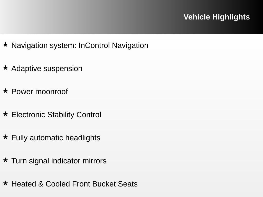 - Radio: Meridian 825W Premium Surround Sound System -inc: 7.1 surround sound system, AM/FM radio, single slot CD/DVD player, MP3 disc compatibility, hard disk drive (HDD) for audio files, EON, RDS, PTY, TA, This system features 15 amplifier channels and 20 speakers including 2 subwoofers, separate digital sound processor amplifier, Audyssey MultEQ sound equalization technology, Meridian Trifield surround mode, dynamic volume control, InControl Touch Pro Navigation system w/60GB Solid State Disk (SSD) drivebased mapping, HDD-based virtual-multichanger, 8" touch-sreen - controls audio, navigation, Bluetooth® v2.0wirless technology for cell phone and audio streaming and climate control, InControl apps enable use of optimized 3rd party smartphone apps installed on a phone through the vehicle's touch screen, HD radio, SiriusXM satellite radio (3 month complimentary subscription included) and InControl Wi-Fi (includes a complimentary data trial period of 3 gigabites or 3 months, which ever occurs first)