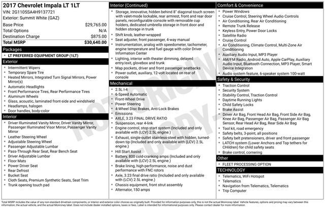 Boasting a striking White exterior, this Impala is equipped with a robust ECOTEC 2.5L I4 DGI DOHC engine, delivering an impressive 22 city/30 highway MPG. Packed with an array of premium features, this vehicle is designed to provide you with unparalleled comfort and convenience: