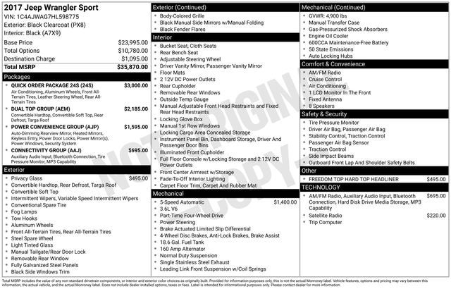 - Manual Convertible Top w/Fixed Roll-Over Protection and Top