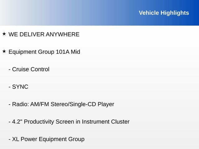 - Radio: AM/FM Stereo w/6 Speakers -inc: auxiliary audio input jack (not available w/SYNC)