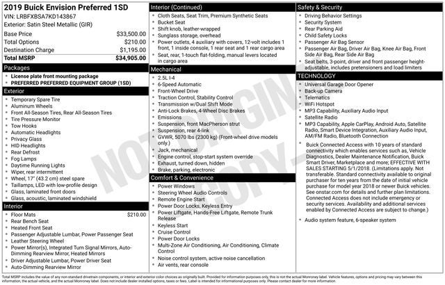 - Audio system, Buick Infotainment System, AM/FM stereo, SiriusXM with 8" diagonal Color Touch Screen, includes 2 USB ports, Bluetooth® streaming for audio and select phones and Phone Integration for Apple CarPlay and Android Auto capability for compatible phone