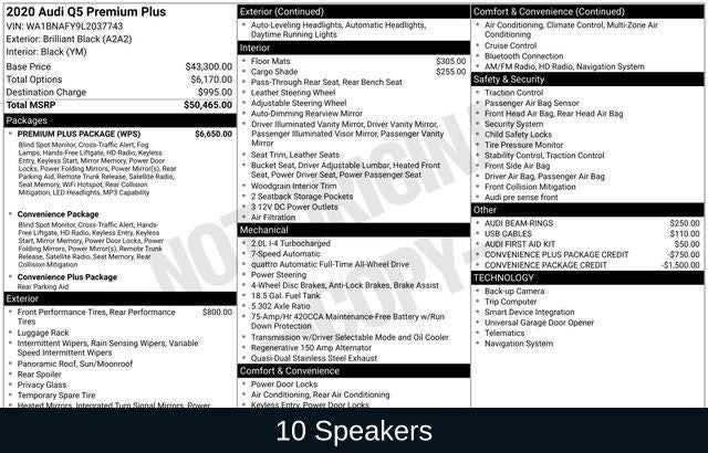 Inside, the Q5 pampers you with a wealth of comfort and convenience features, including 10 premium speakers, Front Dual Zone Climate Control, Heated Front Seats, Power Liftgate, and the convenience of Audi's Smartphone Interface with Apple CarPlay and Android Auto integration.