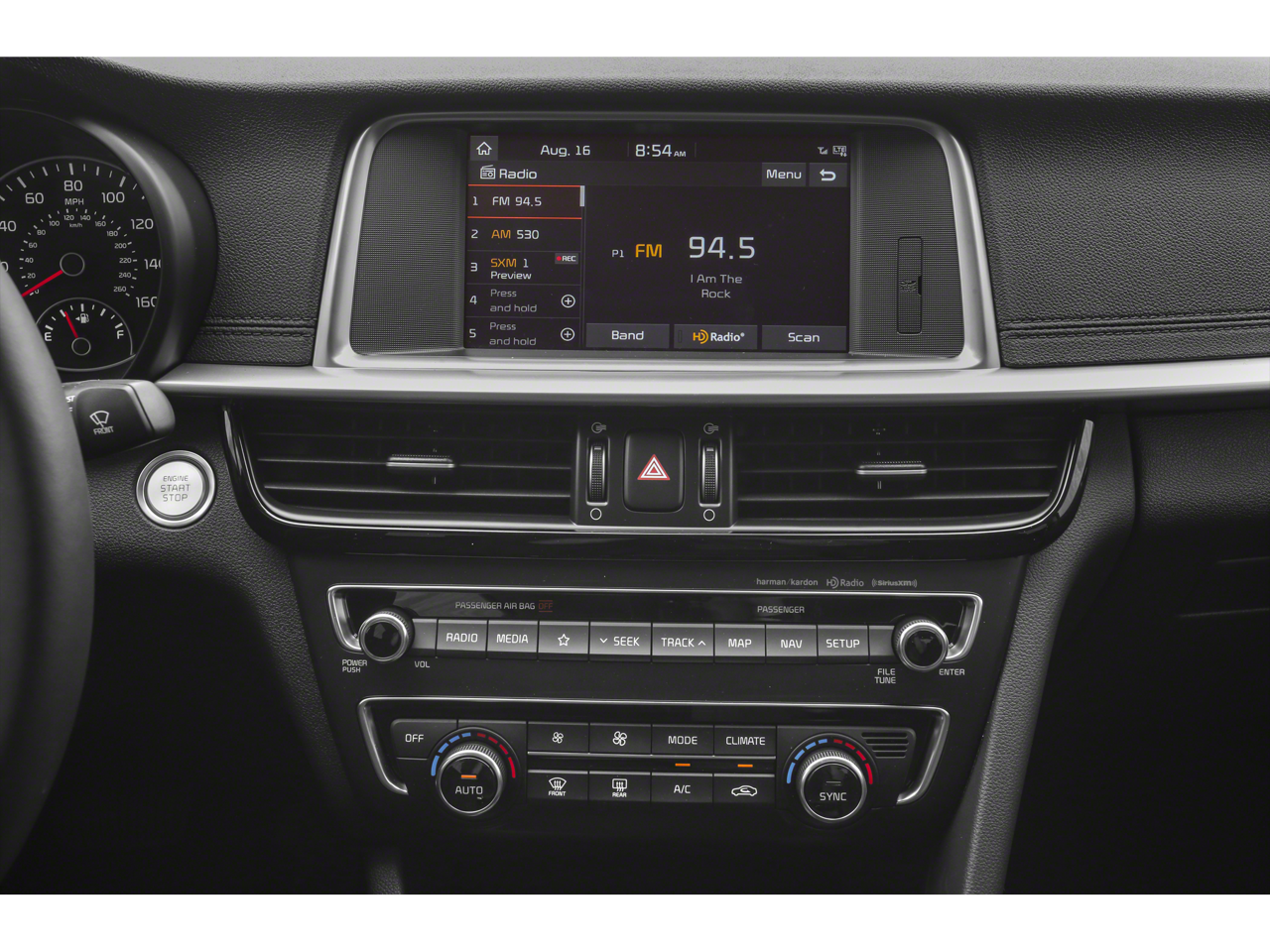 - Radio: harman/kardon AM/FM/MP3/SiriusXM Audio -inc: 630-watts, harman/kardon premium surround sound audio system, 10 speakers including subwoofer, external amplifier, QuantumLogic 7.1 channel surround playback, Clari-Fi digital audio restoration, 8" color touch-screen display, auxiliary input jack, 2 USB chargers, support for Android Auto and Apple CarPlay, Bluetooth® wireless technology w/voice recognition and UVO Link w/navigation