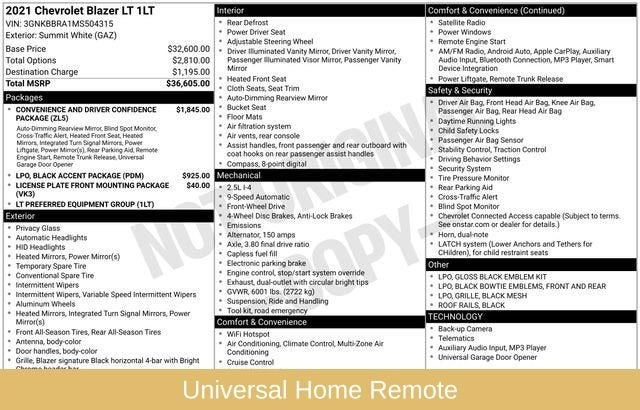 This 2021 Chevrolet Blazer LT is the perfect blend of style, technology, and capability. Experience the difference for yourself by scheduling a test drive today. We're confident you'll be impressed by its exceptional value and the exceptional customer service you'll receive at our dealership.