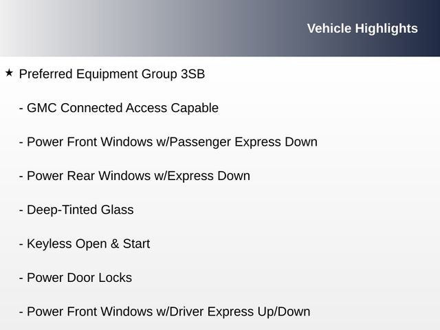Step inside the spacious cabin and you'll be surrounded by thoughtful amenities that cater to your comfort and convenience. Enjoy the warmth of the heated steering wheel, the convenience of the power-adjustable driver's seat, and the connectivity of the GMC Infotainment System with Apple CarPlay and Android Auto integration.