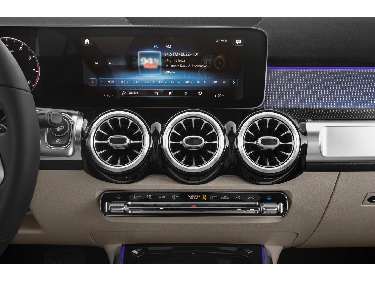 - Radio: MBUX Multimedia System -inc: 7" touchscreen multimedia display, voice control w/natural language understanding and keyword activation, 4 USB-C ports, Bluetooth® connectivity and Mercedes me connect services w/trial period