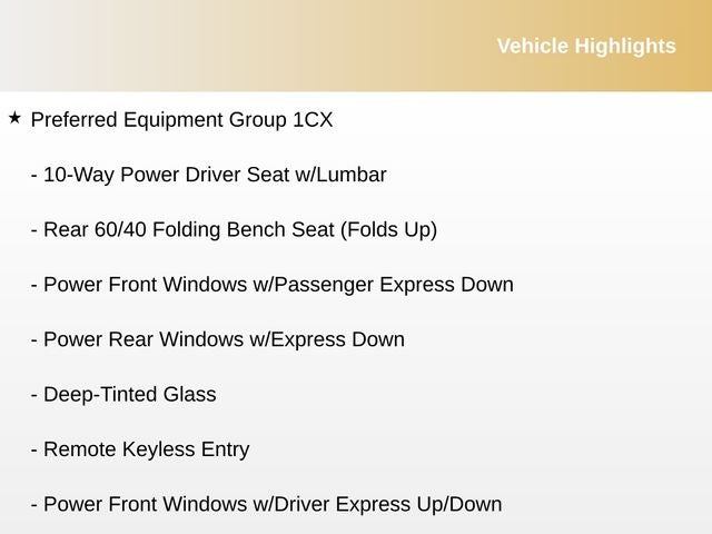 - Custom Convenience Package includes (BTV) Remote Start with (UTJ) content theft alarm, (C49) rear-window defogger, (UF2) bed LED cargo area lighting and (QT5) EZ Lift power lock and release tailgate (Included and only available with (PDX) Custom Value Package.)