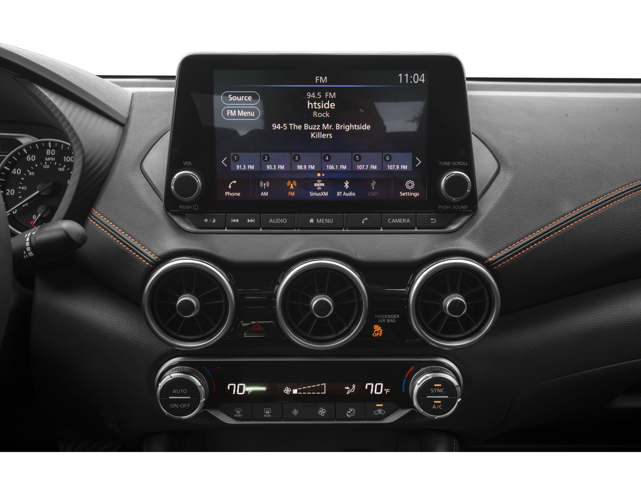 • Radio: AM/FM w/RDS/MP3/Aux-In -inc: 6 speakers plus 2 tweeters in A-pillar, 8" color display w/multi-touch control, streaming audio via Bluetooth®, Bluetooth® hands-free phone system, hands-free text messaging assistant, Siri eyes free, Google Assistant voice recognition w/Apple CarPlay and Android Auto, NissanConnect, (1) front USB connection port (type A), (1) additional front USB (type C) and (1) charge-only USB (type A) center console and SiriusXM radio w/advanced audio features