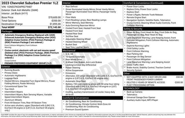 With its striking Gray exterior and well-equipped interior, this 2023 Chevrolet Suburban Premier is the perfect blend of style, capability, and luxury. Experience the difference for yourself and schedule a test drive today. We're confident you'll be impressed by the exceptional value and exceptional driving experience this Suburban has to offer.