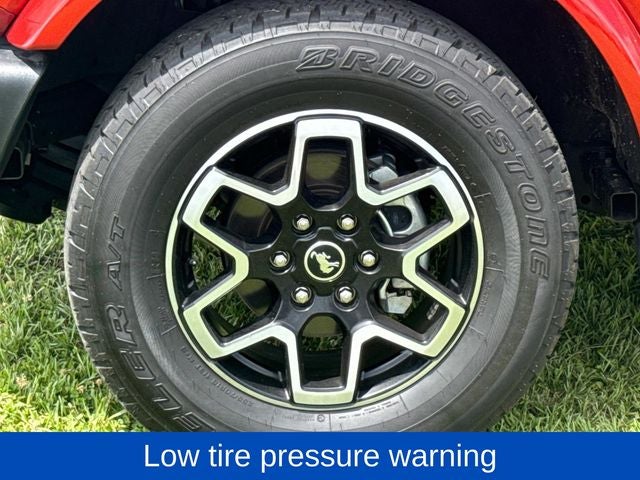 Hot Pepper Red Metallic Tinted Clearcoat 2023 Ford Bronco Outer Banks 4WD 10-Speed Automatic 2.3L EcoBoost I-4 ABS brakes, Compass, Electronic Stability Control, Equipment Group 312A Mid Package, Heated door mirrors, Illuminated entry, Low tire pressure warning, Remote keyless entry, Traction control.
