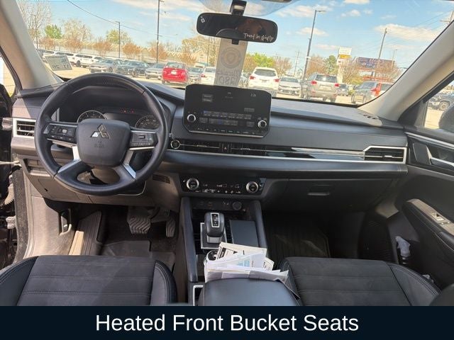 CARFAX One-Owner. Black Diamond 2023 Mitsubishi Outlander SE FWD CVT 2.5L 4-Cylinder DOHC ABS brakes, Active Cruise Control, Alloy wheels, Electronic Stability Control, Front dual zone A/C, Heated door mirrors, Heated Front Bucket Seats, Heated front seats, Illuminated entry, Low tire pressure warning, Navigation System, Power Liftgate, Remote keyless entry, Traction control.