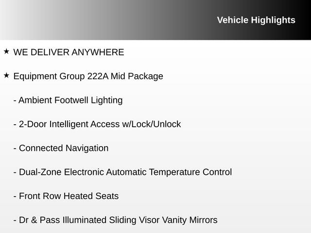 - SYNC 4 -inc: 12" LCD capacitive touchscreen w/swipe capability, wireless phone connection, cloud connected, AppLink w/app catalog, 911 Assist, wireless Apple CarPlay and Android Auto compatibility, digital owner's manual and conversational voice command recognition