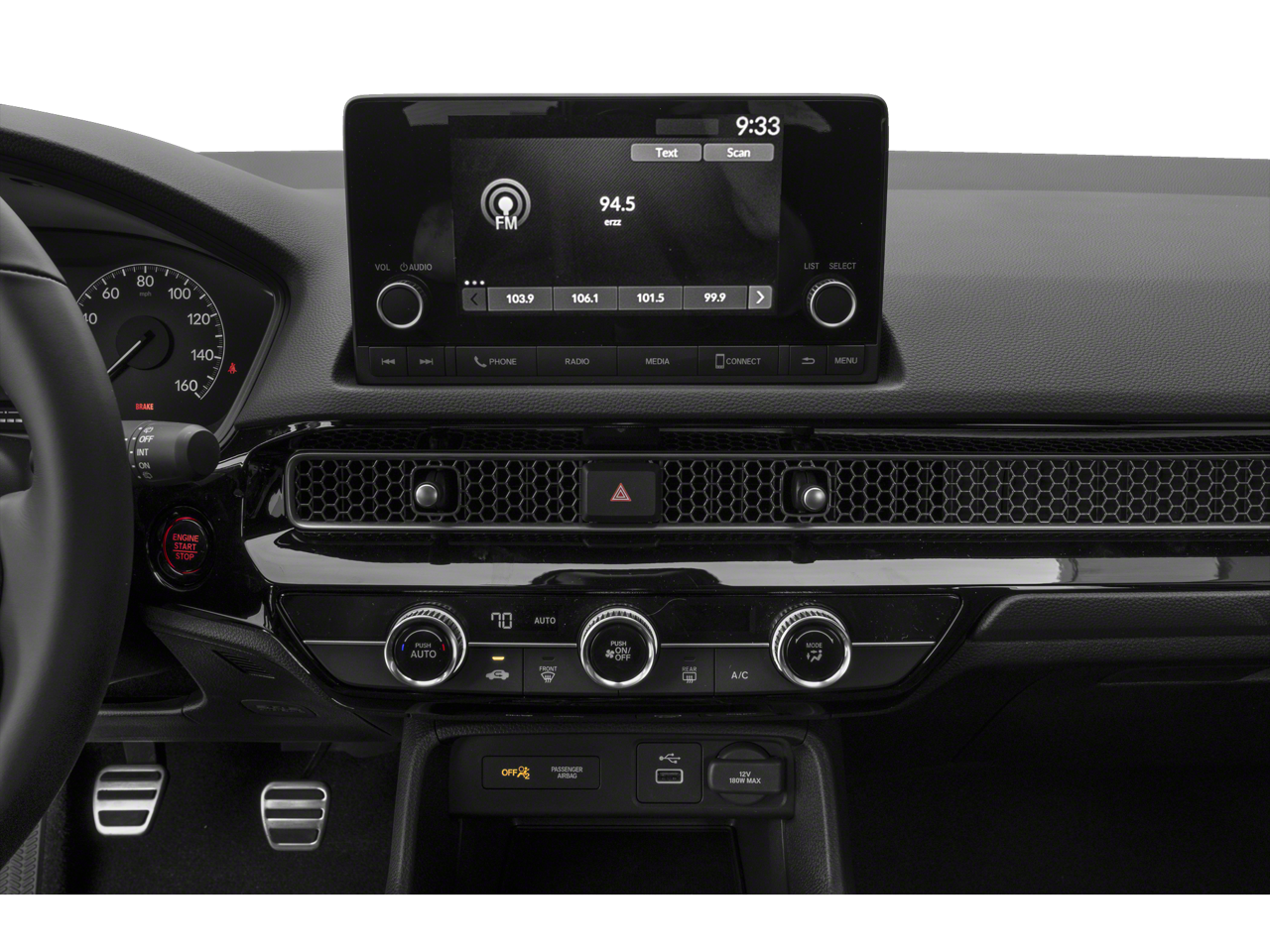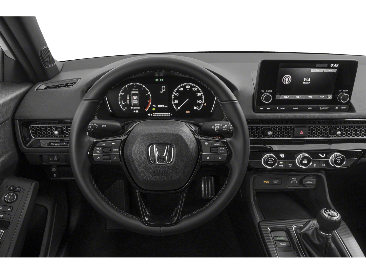 Step inside the Civic Sport and you'll be greeted by a spacious and well-appointed interior. The Cloth/Leatherette Seating Surfaces offer a premium feel, while the Split Folding Rear Seat provides versatility to accommodate your lifestyle. The Tilt and Telescoping Steering Wheel, along with the Automatic Temperature Control, ensure a comfortable and customized driving experience.