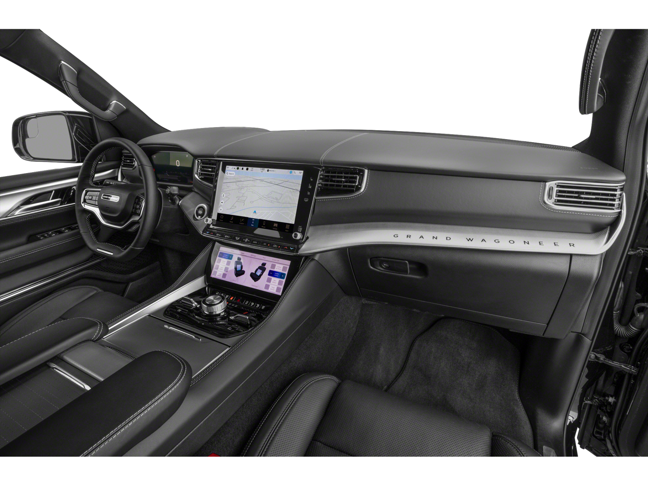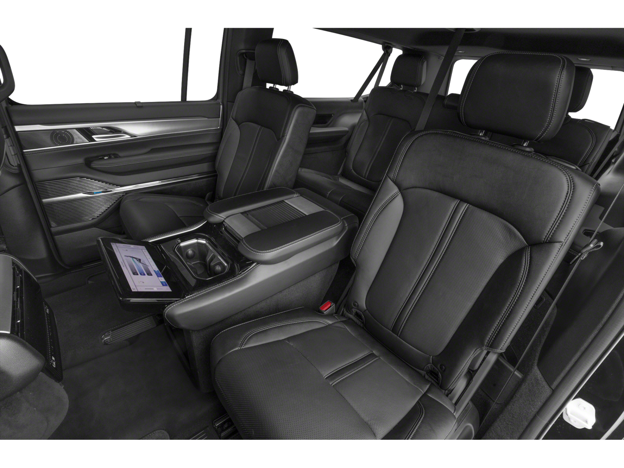 Amazon Fire TV Built-In, Black Interior Accents, Black Roof, Gloss Black Upper & Lower DLO Molding, Obsidian Appearance Package, Piano Black Exterior Accents, Quick Order Package 28T Obsidian, Rear Seat Video Group 1, Seatback Video Screens, Video USB Port, Wheels: 22 x 9.0 Tinted Polished w/Black Insert, 3.92 Rear Axle Ratio, 3rd row seats: bench, 4-Wheel Disc Brakes, ABS brakes, Adjustable pedals, Air Conditioning, Alloy wheels, AM/FM radio: SiriusXM with 360L, Anti-whiplash front head restraints, Apple CarPlay/Android Auto, Audio memory, Auto High-beam Headlights, Auto-dimming door mirrors, Auto-dimming Rear-View mirror, Auto-leveling suspension, Automatic temperature control, Brake assist, Bumpers: body-color, Compass, Delay-off headlights, Driver door bin, Driver vanity mirror, Driver's Seat Mounted Armrest, Dual front impact airbags, Dual front side impact airbags, Electronic Stability Control, Emergency communication system, Four wheel independent suspension, Front anti-roll bar, Front Bucket Seats, Front Center Armrest w/Storage, Front dual zone A/C, Front fog lights, Front reading lights, Fully automatic headlights, Garage door transmitter, Genuine wood console insert, Genuine wood dashboard insert, Genuine wood door panel insert, HD Trailer Tow Package, Heads-Up Display, Heated door mirrors, Heated front seats, Heated rear seats, Heated steering wheel, Heavy-Duty Engine Cooling, Illuminated entry, Knee airbag, Leather steering wheel, Low tire pressure warning, Memory seat, Navigation System, Night vision lights, Normal Duty Suspension, Occupant sensing airbag, Outside temperature display, Overhead airbag, Overhead console, Panic alarm, Passenger door bin, Passenger seat mounted armrest, Passenger vanity mirror, Pedal memory, Power adjustable front head restraints, Power door mirrors, Power driver seat, Power Liftgate, Power moonroof, Power passenger seat, Power steering, Power windows, Premium Leather Trimmed Bucket Seats, Radio data system, Radio: Uconnect 5 Nav w/12.0 Display, Rain sensing wipers, Rear air conditioning, Rear anti-roll bar, Rear dual zone A/C, Rear reading lights, Rear seat center armrest, Rear window defroster, Rear window wiper, Reclining 3rd row seat, Remote keyless entry, Removable Rear Tow Hook, Roof rack, Security system, Speed control, Speed-sensing steering, Speed-Sensitive Wipers, Split folding rear seat, Steering wheel memory, Steering wheel mounted audio controls, Tachometer, Telescoping steering wheel, Tilt steering wheel, Traction control, Trailer Brake Control, Trailer Hitch Zoom, Trip computer, Turn signal indicator mirrors, Two Tone Paint Group, Variably intermittent wipers, Ventilated front seats, Ventilated rear seats, Voltmeter, Wheels: 22 x 9.0 Premium 4 Aluminum, Amazon Fire TV Built-In, Black Interior Accents, Black Roof, Gloss Black Upper & Lower DLO Molding, Obsidian Appearance Package, Piano Black Exterior Accents, Quick Order Package 28T Obsidian, Rear Seat Video Group 1, Seatback Video Screens, Video USB Port, Wheels: 22 x 9.0 Tinted Polished w/Black Insert.