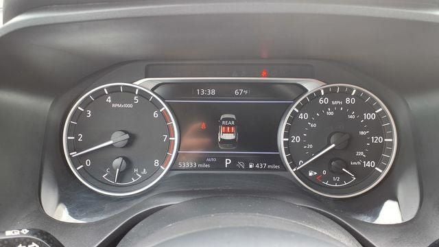 4-Wheel Disc Brakes, 5.676 Axle Ratio, 6 Speakers, ABS brakes, Air Conditioning, Alloy wheels, AM/FM radio: SiriusXM, Auto High-beam Headlights, Automatic temperature control, Brake assist, Bumpers: body-color, Cloth Seat Trim w/Patterned Inserts, Delay-off headlights, Driver door bin, Driver vanity mirror, Dual front impact airbags, Dual front side impact airbags, Electronic Stability Control, Emergency communication system: NissanConnect Services, First Aid Kit, Floor Mats w/1-Piece Cargo Area Protector, Four wheel independent suspension, Front anti-roll bar, Front Bucket Seats, Front Center Armrest, Front dual zone A/C, Front reading lights, Fully automatic headlights, Heated door mirrors, Illuminated entry, Knee airbag, Low tire pressure warning, NissanConnect featuring Apple CarPlay and Android Auto, Occupant sensing airbag, Outside temperature display, Overhead airbag, Overhead console, Panic alarm, Passenger door bin, Passenger vanity mirror, Power door mirrors, Power driver seat, Power Liftgate, Power steering, Power windows, Radio data system, Radio: AM/FM NissanConnect, Rear anti-roll bar, Rear Parking Sensors, Rear seat center armrest, Rear side impact airbag, Rear window defroster, Rear window wiper, Remote keyless entry, Speed control, Speed-Sensitive Wipers, Split folding rear seat, Spoiler, Steering wheel mounted audio controls, Tachometer, Telescoping steering wheel, Tilt steering wheel, Traction control, Trip computer, Variably intermittent wipers, Wheels: 18 Dark Painted Machine Finished Alloy.