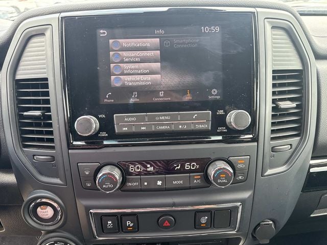 120V/12V Outlets In Back Of Center Console, 2 Illuminated USB-A Ports In Back Of Center Console, 20 Painted Alloy Wheels, Auto Dual Zone HVAC, Auto-Dimming Rear-View Mirror, Dedicated Configurable Cell Phone Holder, Dual Illuminated Vanity Mirrors, Front & Rear Parking Sensors, Gooseneck Hitch, Heated Front Captain's Chairs, Intelligent Key System, Leather-Wrapped Steering Wheel, LED Mood Light, NissanConnect Services, Overhead Console w/Sunglass Holder, Power Sliding Rear Window w/Defogger, Proximity Activation, Rear HVAC Vents, SV Convenience Package, Wi-Fi Hotspot, 17 x 7.5 Styled Steel Wheels, 4-Wheel Disc Brakes, 4.083 Axle Ratio, 6 Speakers, ABS brakes, Air Conditioning, AM/FM radio: SiriusXM, Auto High-beam Headlights, Blind Spot Warning, Brake assist, Bumpers: chrome, Carpet Floor Mats, Cloth Seat Trim, Driver door bin, Dual front impact airbags, Dual front side impact airbags, Electronic Stability Control, Front anti-roll bar, Front Center Armrest w/Storage, Front Manual Split Bench Seat (40/20/40), Front reading lights, Front wheel independent suspension, Fully automatic headlights, Heated door mirrors, Illuminated entry, Knee airbag, Low tire pressure warning, NissanConnect featuring Apple CarPlay and Android Auto, Occupant sensing airbag, Outside temperature display, Overhead airbag, Overhead console, Panic alarm, Passenger door bin, Passenger vanity mirror, Power door mirrors, Power steering, Power windows, Radio data system, Radio: NissanConnect AM/FM, Rear anti-roll bar, Rear Parking Sensors, Rear seat center armrest, Rear step bumper, Rear window defroster, Remote keyless entry, Security system, Speed control, Speed-sensing steering, Speed-Sensitive Wipers, Splash Guards, Split folding rear seat, Steering wheel mounted audio controls, Tachometer, Telescoping steering wheel, Tilt steering wheel, Traction control, Turn signal indicator mirrors, Variably intermittent wipers, Voltmeter, 120V/12V Outlets In Back Of Center Console, 2 Illuminated USB-A Ports In Back Of Center Console, 20 Painted Alloy Wheels, Auto Dual Zone HVAC, Auto-Dimming Rear-View Mirror, Dedicated Configurable Cell Phone Holder, Dual Illuminated Vanity Mirrors, Front & Rear Parking Sensors, Gooseneck Hitch, Heated Front Captain's Chairs, Intelligent Key System, Leather-Wrapped Steering Wheel, LED Mood Light, NissanConnect Services, Overhead Console w/Sunglass Holder, Power Sliding Rear Window w/Defogger, Proximity Activation, Rear HVAC Vents, SV Convenience Package, Wi-Fi Hotspot.
