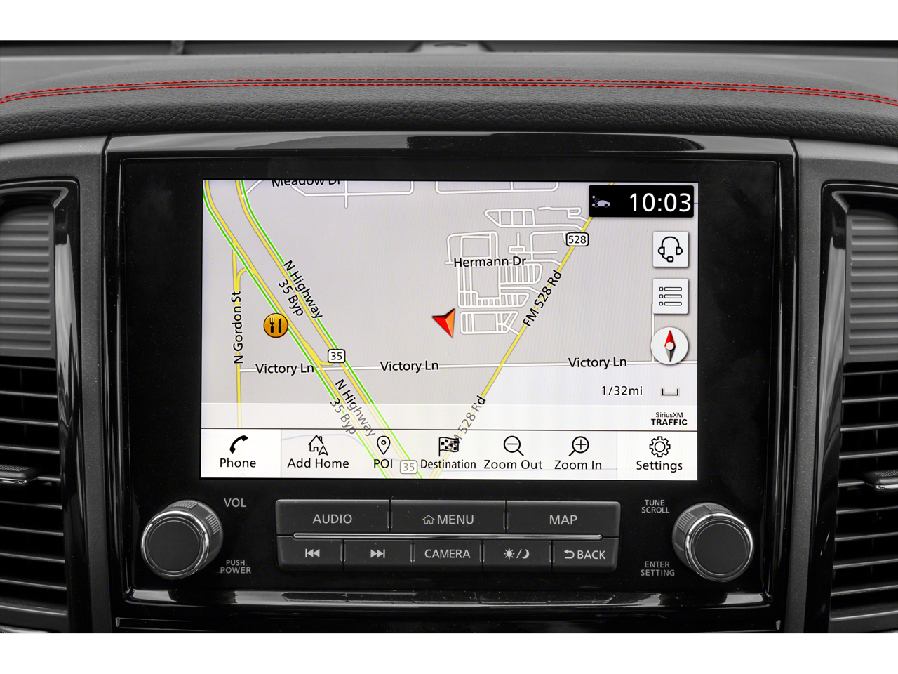 - Radio: NissanConnect w/Navigation -inc: 9" touchscreen display, 6 speakers, wireless Apple CarPlay, Android Auto, SiriusXM radio, Nissan door to door navigation w/3D building graphics and satellite imagery, connected navigation features including online POI search, over-the-air map updates and online premium traffic information, SiriusXM Traffic, SiriusXM Travel Link w/weather, fuel prices, movie listings, stock info, sports and parking, TomTom weather, Wi-Fi hotspot, follow me home function, 2 illuminated USB connections (1 type A, 1 type C), 2 USB-A charge only ports, Bluetooth® hands-free phone system, streaming audio via Bluetooth® and hands-free text messaging assistant