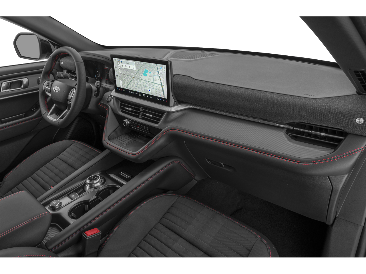 Black Metallic 2025 Ford Explorer ST-Line 4WD 10-Speed Automatic 2.3L EcoBoost I-4 WE DELIVER ANYWHERE, 4WD, Equipment Group 300A Standard Package, Performance Brakes, Red Painted Perf Front & Rear Brake Calipers, ST-Line Street Pack, Wheels: 21 Magnetite-Painted Aluminum, 10 Speakers, 3.58 Non-Limited Slip Rear Axle, 3rd row seats: bench, 4-Wheel Disc Brakes, ABS brakes, Air Conditioning, Alloy wheels, AM/FM radio: SiriusXM with 360L, Apple CarPlay/Android Auto, Auto High-beam Headlights, Automatic temperature control, Brake assist, Bumpers: body-color, Compass, Delay-off headlights, Driver door bin, Driver vanity mirror, Dual front impact airbags, Dual front side impact airbags, Electronic Stability Control, Emergency communication system: 911 Assist, Exterior Parking Camera Rear, Four wheel independent suspension, Front anti-roll bar, Front Bucket Seats, Front Center Armrest, Front dual zone A/C, Front fog lights, Front reading lights, Fully automatic headlights, Garage door transmitter, Heated door mirrors, Heated front seats, Heated steering wheel, Heated Unique Cloth Captain's Chairs, Illuminated entry, Internet access capable: FordPass Connect 5G, Knee airbag, Leather steering wheel, Low tire pressure warning, Navigation System, Occupant sensing airbag, Outside temperature display, Overhead airbag, Overhead console, Panic alarm, Passenger door bin, Passenger vanity mirror, Power door mirrors, Power driver seat, Power Liftgate, Power passenger seat, Power steering, Power windows, Radio: B&O Sound System by Bang & Olufsen, Rear air conditioning, Rear anti-roll bar, Rear reading lights, Rear window defroster, Rear window wiper, Remote keyless entry, Security system, Speed control, Speed-sensing steering, Speed-Sensitive Wipers, Split folding rear seat, Spoiler, Steering wheel mounted audio controls, Tachometer, Telescoping steering wheel, Tilt steering wheel, Traction control, Trip computer, Variably intermittent wipers, Wheels: 20 Ebony-Painted Machined Aluminum, 4WD, Equipment Group 300A Standard Package, Performance Brakes, Red Painted Perf Front & Rear Brake Calipers, ST-Line Street Pack, Wheels: 21 Magnetite-Painted Aluminum.