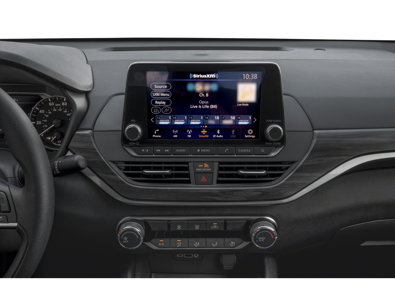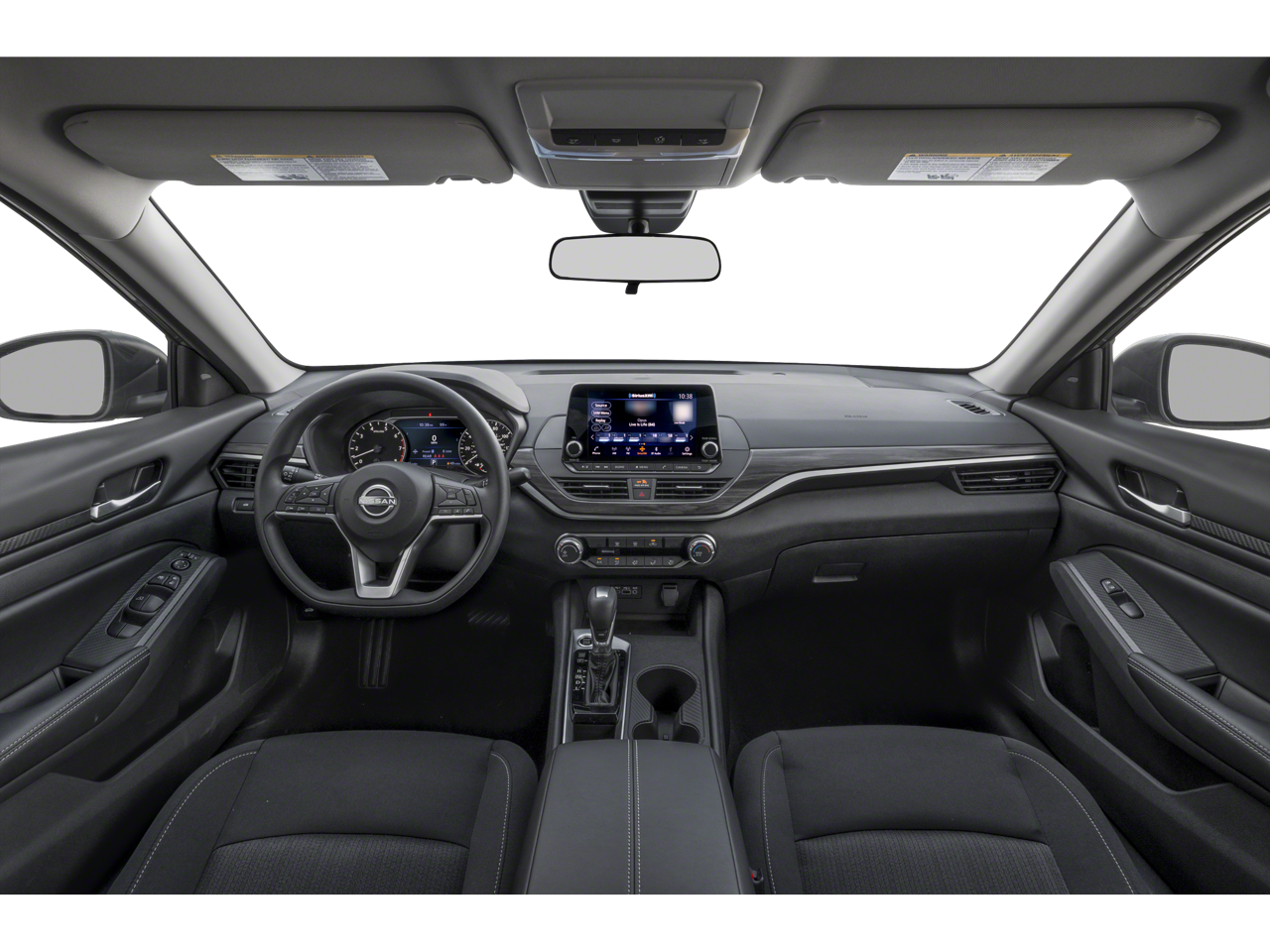 17 Machined Alloy Wheels, 4-Wheel Disc Brakes, 6 Speakers, ABS brakes, Air Conditioning, Alloy wheels, AM/FM radio: SiriusXM, Auto High-beam Headlights, Blind Spot Warning, Brake assist, Bumpers: body-color, Cloth Seat Trim, Delay-off headlights, Driver door bin, Driver vanity mirror, Dual front impact airbags, Dual front side impact airbags, Electronic Stability Control, Floor Mats/Trunk Mat/Hideaway Net, Four wheel independent suspension, Front anti-roll bar, Front Bucket Seats, Front Center Armrest, Front reading lights, Fully automatic headlights, Illuminated entry, Knee airbag, Low tire pressure warning, NissanConnect featuring Apple CarPlay and Android Auto, NissanConnect Services Powered by SiriusXM, Occupant sensing airbag, Outside temperature display, Overhead airbag, Overhead console, Panic alarm, Passenger door bin, Passenger vanity mirror, Power door mirrors, Power driver seat, Power steering, Power windows, Radio data system, Radio: AM/FM Audio System, Rear anti-roll bar, Rear Parking Sensors, Rear reading lights, Rear seat center armrest, Rear side impact airbag, Rear window defroster, Remote keyless entry, Security system, Speed control, Speed-sensing steering, Speed-Sensitive Wipers, Split folding rear seat, Steering wheel mounted audio controls, Tachometer, Telescoping steering wheel, Tilt steering wheel, Traction control, Trip computer, Variably intermittent wipers.