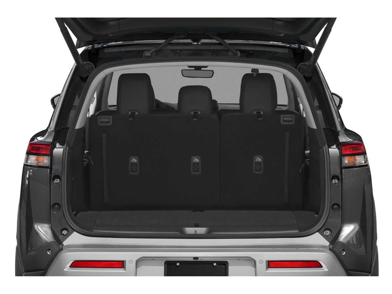 • Fixed 60-40 Bench Leatherette 3rd Row Seat Front, Manual Recline, Manual Fold Into Floor, 3 Manual and Adjustable Head Restraints