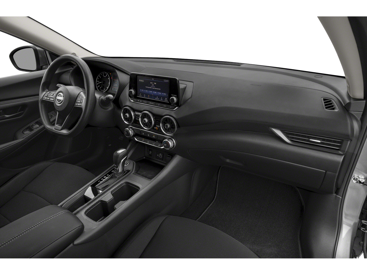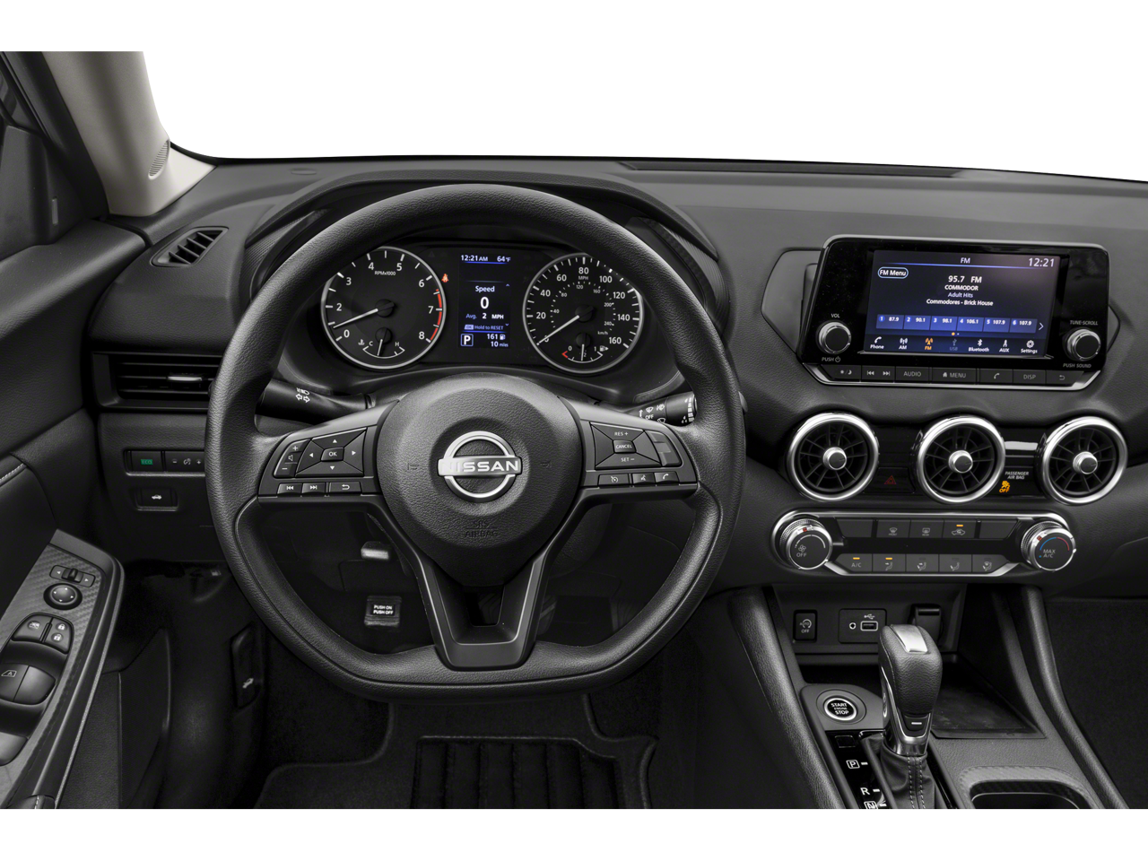 4 Speakers, ABS brakes, Air Conditioning, AM/FM radio, Auto High-beam Headlights, Blind Spot Warning, Brake assist, Bumpers: body-color, Carpeted Floor Mats with Trunk Mat, Cloth Seat Trim, Delay-off headlights, Driver door bin, Driver vanity mirror, Dual front impact airbags, Dual front side impact airbags, Electronic Stability Control, Four wheel independent suspension, Front anti-roll bar, Front Bucket Seats, Front Center Armrest, Front reading lights, Fully automatic headlights, Illuminated entry, Knee airbag, Low tire pressure warning, NissanConnect featuring Apple CarPlay and Android Auto, Occupant sensing airbag, Outside temperature display, Overhead airbag, Overhead console, Panic alarm, Passenger door bin, Passenger vanity mirror, Power door mirrors, Power steering, Power windows, Radio data system, Radio: AM/FM with RDS/MP3/Aux-in, Rear anti-roll bar, Rear Parking Sensors, Rear side impact airbag, Rear window defroster, Remote keyless entry, Speed control, Speed-sensing steering, Split folding rear seat, Steering wheel mounted audio controls, Tachometer, Telescoping steering wheel, Tilt steering wheel, Traction control, Trip computer, Variably intermittent wipers, Wheels: 16 Steel with Full Covers.
