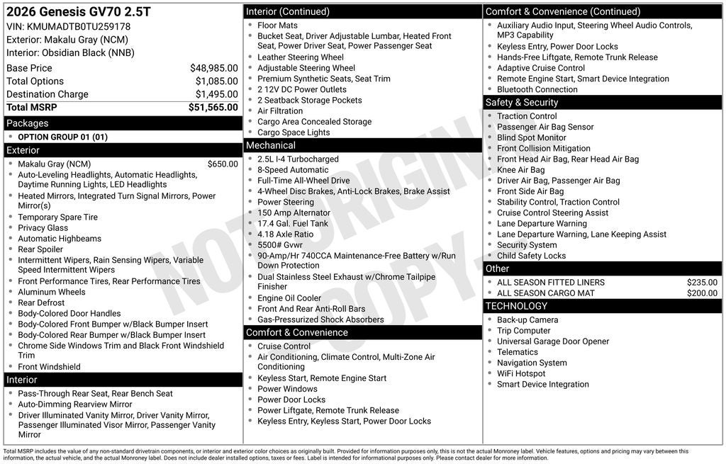- Vehicle Name: Genesis GV70
